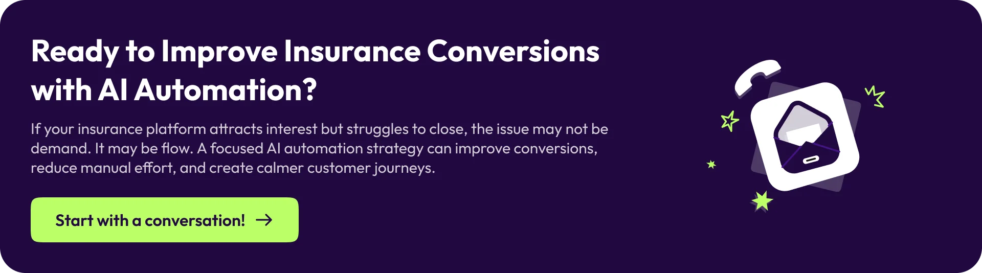 This is where AI automation in insurance starts to matter. Not as a flashy upgrade. Not as a trend. But as a quiet way to keep customers moving forward instead of drifting away. And when that happens, conversions follow.